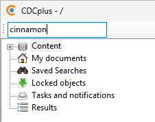 Like all searches in Cinnamon, quick search is based on fields. Quick search is configurable. In the client configuration, the administrator can define the fields to be searched.